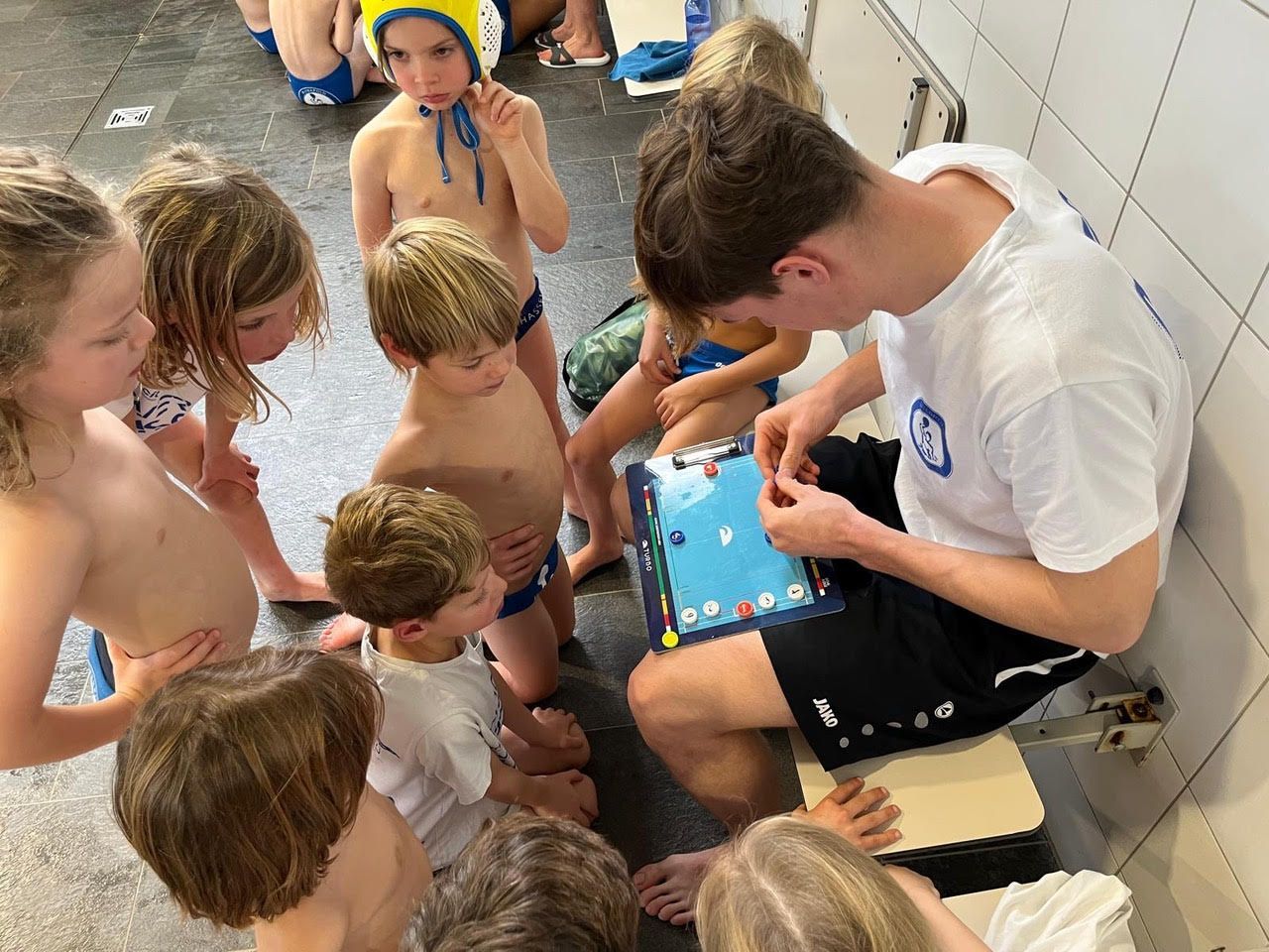 Het was zaterdagavond en Hasselt nam het op tegen het altijd taaie Calypso in een potje waterpolo dat van de eerste tot de laatste seconde boordevol energie zat. Luka, de U14 keeper, kwam voor de gelegenheid onze Luuk vervangen. En dat deed hij prima! Aangezien coaches Sander en Laurens zelf wedstrijden hadden, werden we op pad gestuurd met oude rot in het vak Luc Verhoeven! Luc coachte met frisse maar beproefde ideeën, een aanstekelijk enthousiasme en met 3 duidelijke boodschappen: Pressen! Op de juiste positie liggen! Terugzwemmen! De eerste 2 kwartjes waren redelijk gelijkopgaand in goals met een licht overwicht voor Hasselt. Calypso kwam eigenlijk niet vaak voor doel en scoorde vooral via langeafstandsschoten. De spelers van Hasselt hielden de focus goed op het advies van coach Luc. In verdediging voerden ze de druk op bij Calypso waardoor de seconden wegtikten. De jongens en meisjes van Hasselt lagen vrijwel altijd op de juiste plek. De opbouw ging vlot, er werd overzicht gehouden, en de passing ging goed. Na elke aanval, goal of misser werd er goed teruggezwommen. En dat loonde: meerdere counters van Calypso werden in de kiem gesmoord. De verdediging zat kort, scherp en doortastend. En in de aanval was het een waar doelpuntenfestival, vooral in de 2 laatste kwartjes. De eindscore van de wedstrijd Calypso – Hasselt werd maar liefst 13-35! De sfeer zit goed. De ploeg groeit. En de drie gouden regels van coach Luc wierpen hun vruchten af. Als dit de lijn is, dan belooft het verder een prachtig seizoen te worden voor Hasselt. Op naar de volgende match — mét press, positie, en een flinke dosis zwemplezier!