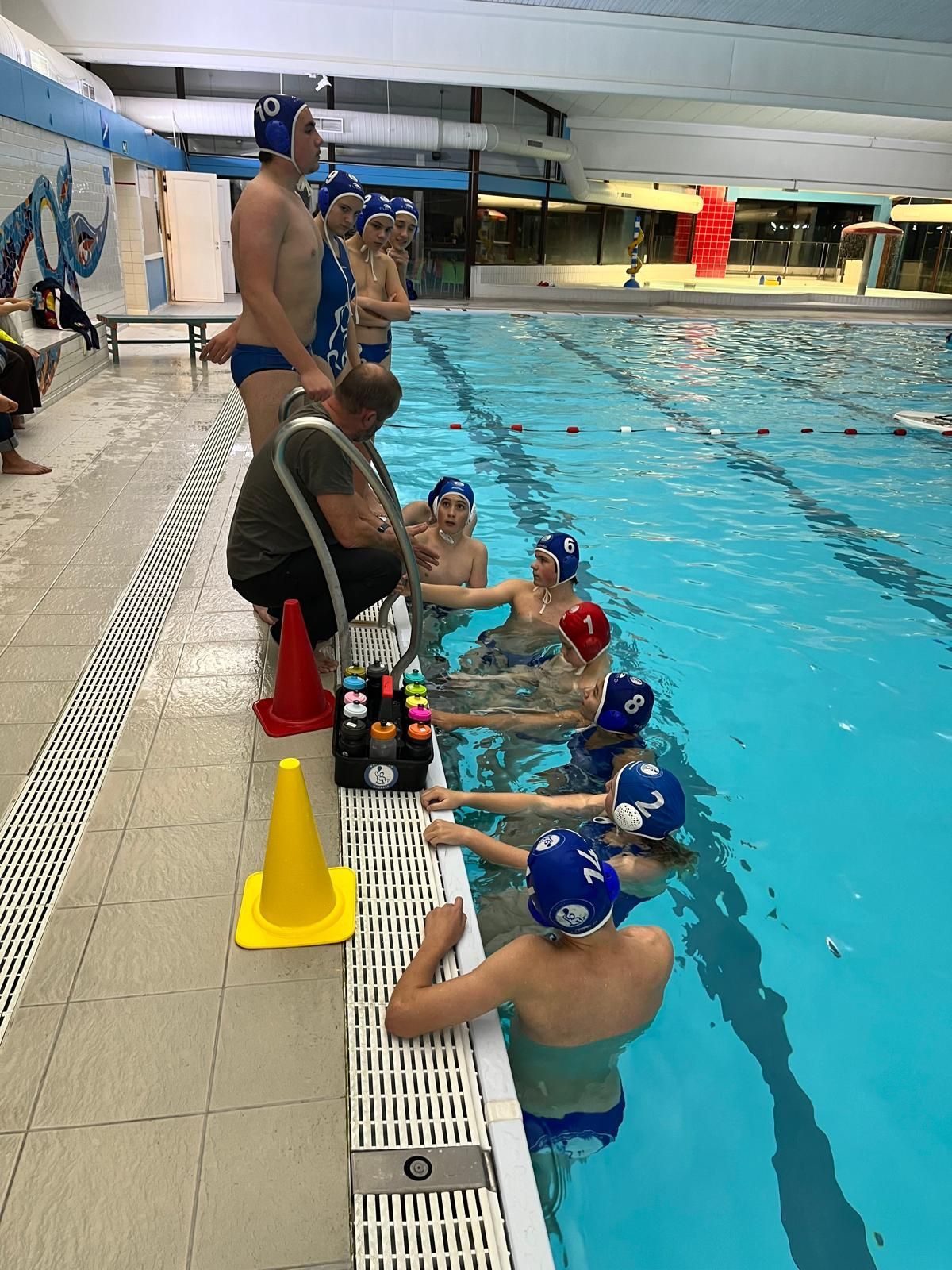 Het was zaterdagavond en Hasselt nam het op tegen het altijd taaie Calypso in een potje waterpolo dat van de eerste tot de laatste seconde boordevol energie zat. Luka, de U14 keeper, kwam voor de gelegenheid onze Luuk vervangen. En dat deed hij prima! Aangezien coaches Sander en Laurens zelf wedstrijden hadden, werden we op pad gestuurd met oude rot in het vak Luc Verhoeven! Luc coachte met frisse maar beproefde ideeën, een aanstekelijk enthousiasme en met 3 duidelijke boodschappen: Pressen! Op de juiste positie liggen! Terugzwemmen! De eerste 2 kwartjes waren redelijk gelijkopgaand in goals met een licht overwicht voor Hasselt. Calypso kwam eigenlijk niet vaak voor doel en scoorde vooral via langeafstandsschoten. De spelers van Hasselt hielden de focus goed op het advies van coach Luc. In verdediging voerden ze de druk op bij Calypso waardoor de seconden wegtikten. De jongens en meisjes van Hasselt lagen vrijwel altijd op de juiste plek. De opbouw ging vlot, er werd overzicht gehouden, en de passing ging goed. Na elke aanval, goal of misser werd er goed teruggezwommen. En dat loonde: meerdere counters van Calypso werden in de kiem gesmoord. De verdediging zat kort, scherp en doortastend. En in de aanval was het een waar doelpuntenfestival, vooral in de 2 laatste kwartjes. De eindscore van de wedstrijd Calypso – Hasselt werd maar liefst 13-35! De sfeer zit goed. De ploeg groeit. En de drie gouden regels van coach Luc wierpen hun vruchten af. Als dit de lijn is, dan belooft het verder een prachtig seizoen te worden voor Hasselt. Op naar de volgende match — mét press, positie, en een flinke dosis zwemplezier!